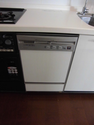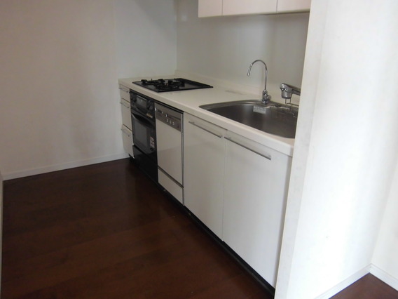 キッチン本体は交換せず扉と食洗機、ガスコンロのみ交換しました。たったそれだけですが、見た目は新品同様でタワーマンションにふさわしい風格になりました。床のカラーに合わせて統一感をもたせたのもポイントです。